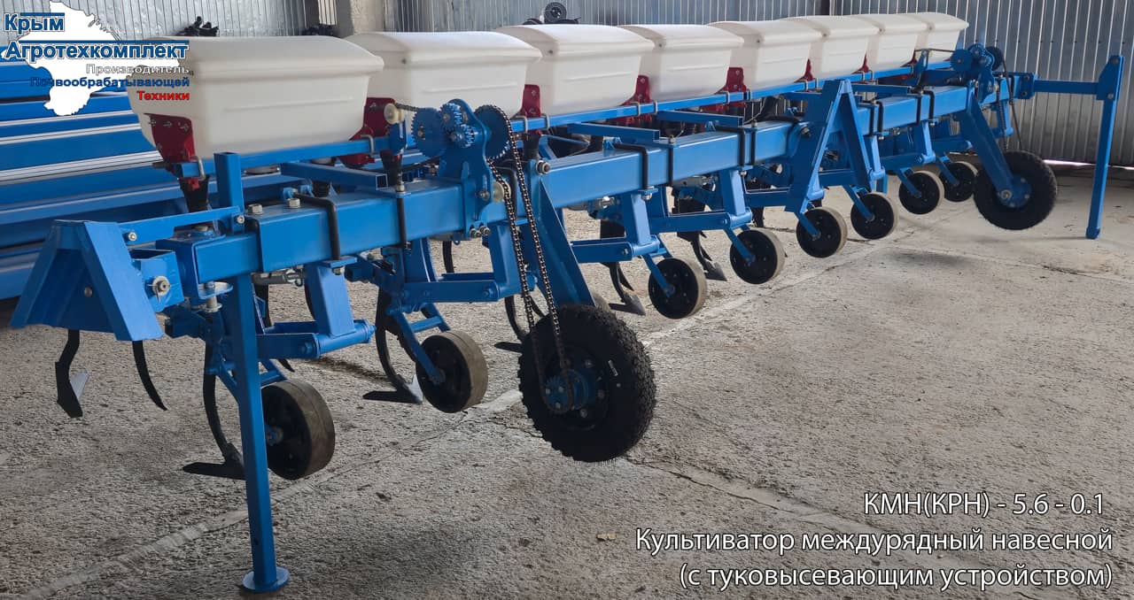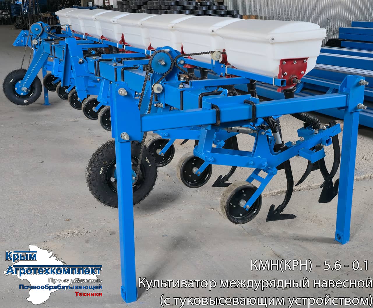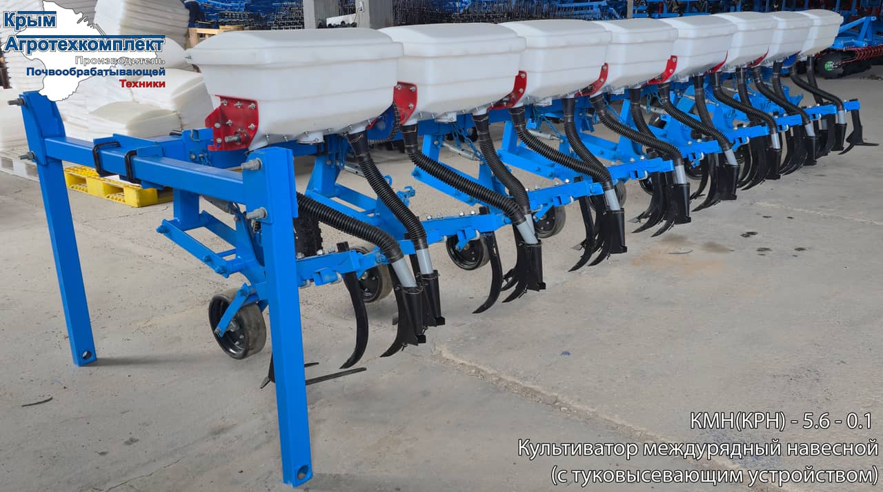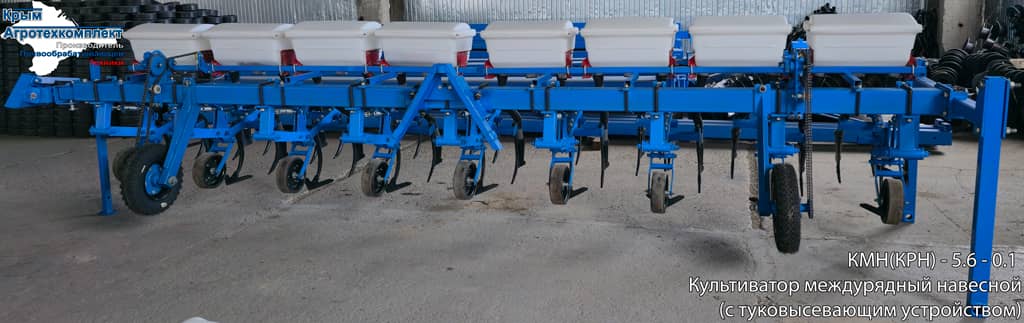 - КМН-5.6-01 – шириной захвата 5,6м для обработки 8-и междурядий 700 мм одновременно и внесения удобрений , 9 секций рабочих органов, комплектуется туковысевающим аппаратом на базе АТП-2 (по заказам потребителей). Количество туковых банок - 8 шт.